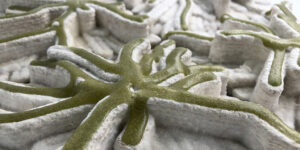 MYCO-ALGA是由天然有機廢物與3D列印技術製作的浴室磁磚,利用天然藻類設計出獨一無二的外觀,兼顧設計的同時也追求環保與永續發展。