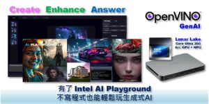 Intel整合自家NPU/GPU硬體強大算力及OpenVINO開源推論工具套件,開發出一套「AI Playground」,讓聊天對話、文字生成影像及影像強化輕輕鬆鬆就能完成。
