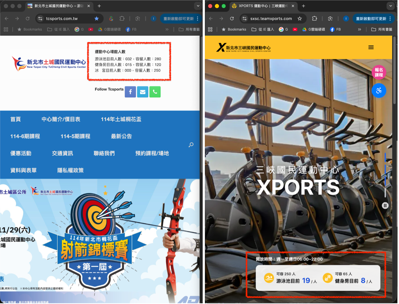 但我很快就發現事情沒那麼簡單。兩家運動中心的網頁設計完全不同,顯示人數的區塊和方式也不一樣,這代表背後的網頁原始碼有很大的差異。