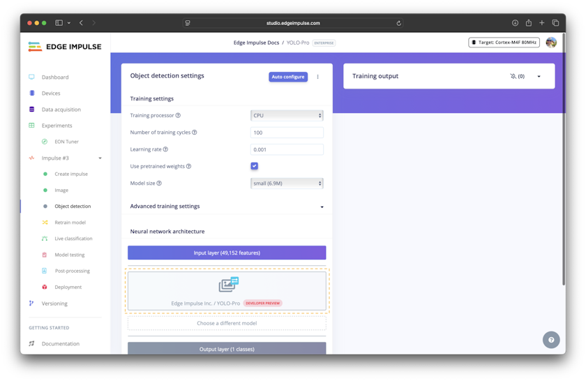 Edge Impulse 更將 YOLO-Pro 與自家 Edge Impulse Studio 完整整合。開發者不需手動調參,只要在圖形化介面中選擇 YOLO-Pro 模型,EON Tuner 便會根據資料集與硬體自動優化設定,實現「一鍵適配」。