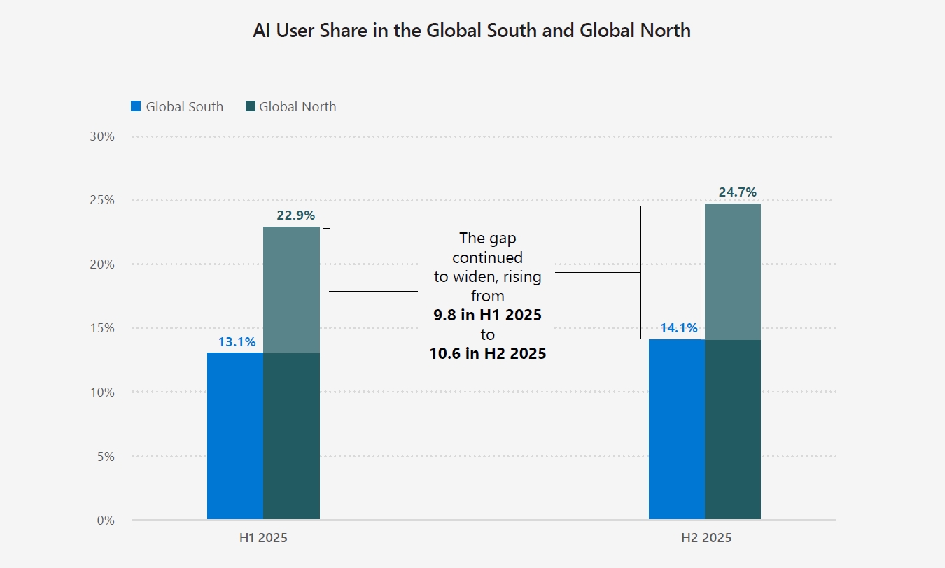 - 微軟報告:全球AI擴散率持續成長 數位落差亦快速擴大 - 2026/01/12