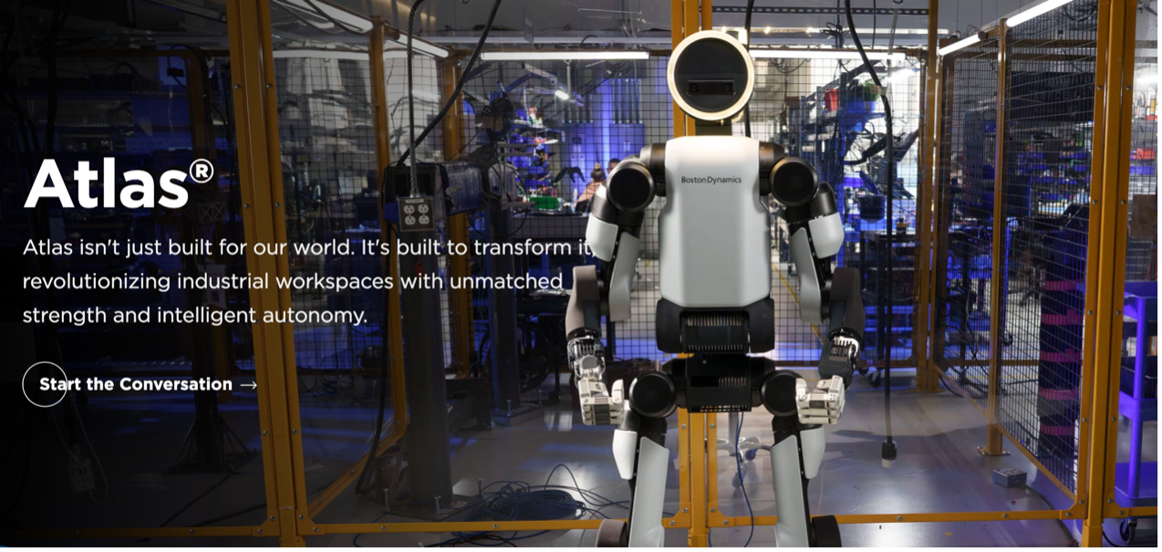 Boston Dynamics的Atlas仍被視為全球人形機器人技術的標竿。Boston Dynamics深耕動態平衡、全身運動控制與機電整合,展現了Atlas在行走、跳躍、攀爬與精細物件操作上的各種可能。於CES 2026登場人形機器人的此次展出重心從高難度動作展示,轉向工業場域中實際運用的潛力:全電動式,同時具備360度的旋轉關節與50公斤工業級負載,可於工業環鏡中承擔搬運重物與精密分揀的工作。