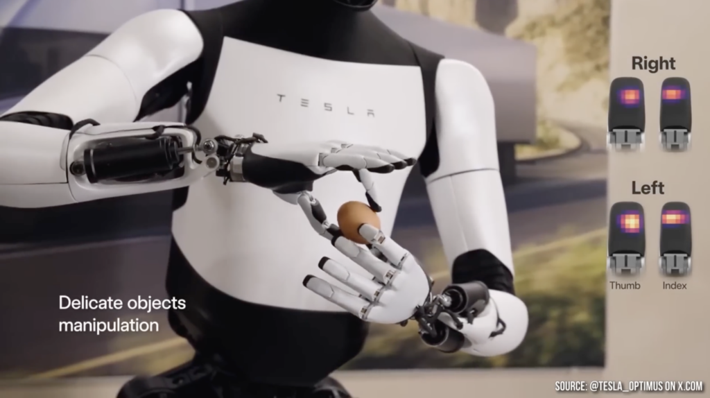 | Tesla Optimus Gen 3 | 22 DoF | 腱繩傳動 (Tendon-driven),執行器位於前臂 | 端到端神經網路 (End-to-End NN) |