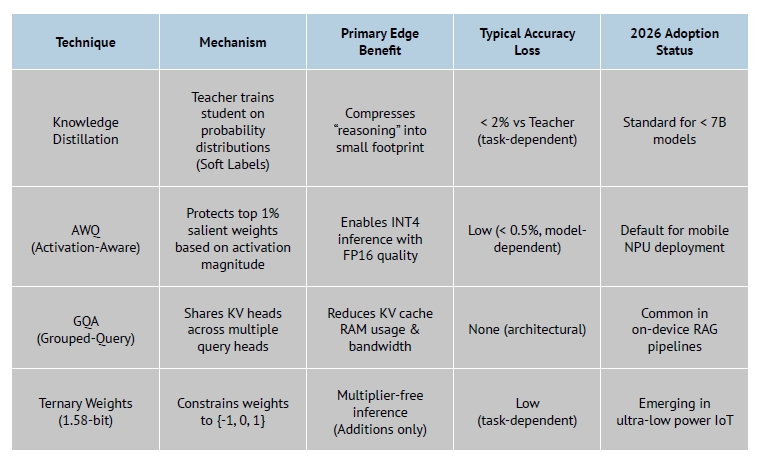 邊緣應用AI模型壓縮技術比較(圖片來源: 《2026 Edge AI Technology Report》)