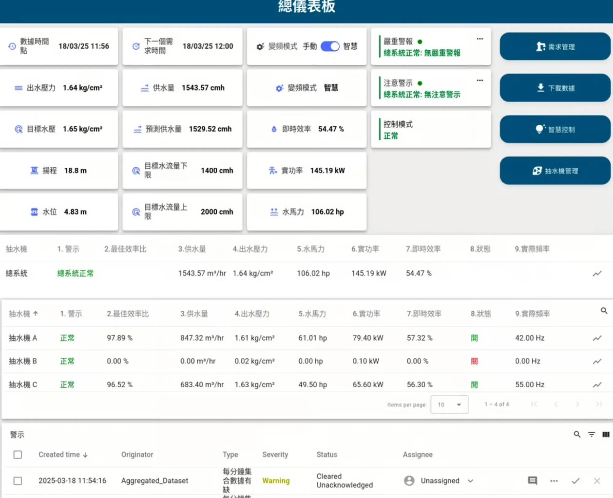 AquaOptima.ai提供完整監控/操作/管理與紀錄功能,是現場操作與管理人員的數位管理中樞。(圖片來源:AquaOptima.ai官網)