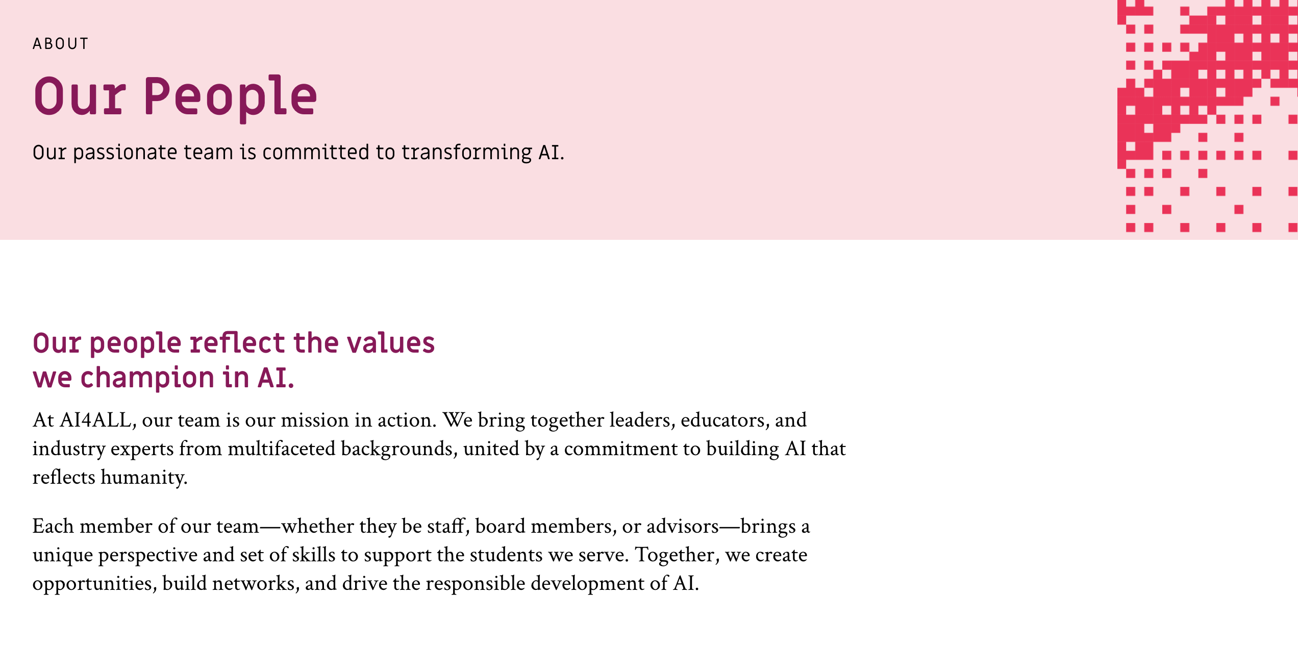 AI4ALL的願景清晰且明確:讓AI教育公平、多元,並能解決真實出現的問題。透過專案學習、倫理教育,以及導師制度,AI4ALL建構一個透過AI織就的教育網路,弭平教育的不平等。透過讓多元背景的學生參與學習,不僅提高了AI領域的人才池,也促使未來科技發展能夠反映出社會更多元的需求與觀點。當AI不再只是精英與少數企業的專利,而真正成為所有人可以理解、使用並造福社會的工具,才是真正的公平與創新。