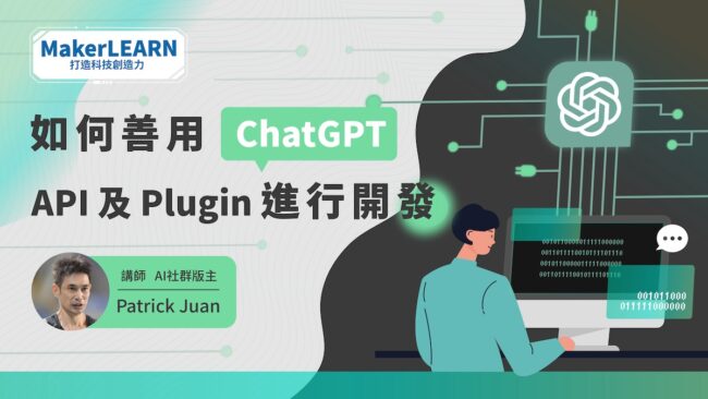 本課程邀請到長期在AI社群分享新知的推手 – Patrick(派大)開講,針對ChatGPT API及Plugin這兩個串接ChatGPT的熱門開發方式進行介紹,教您更快實現各種需求的應用功能。